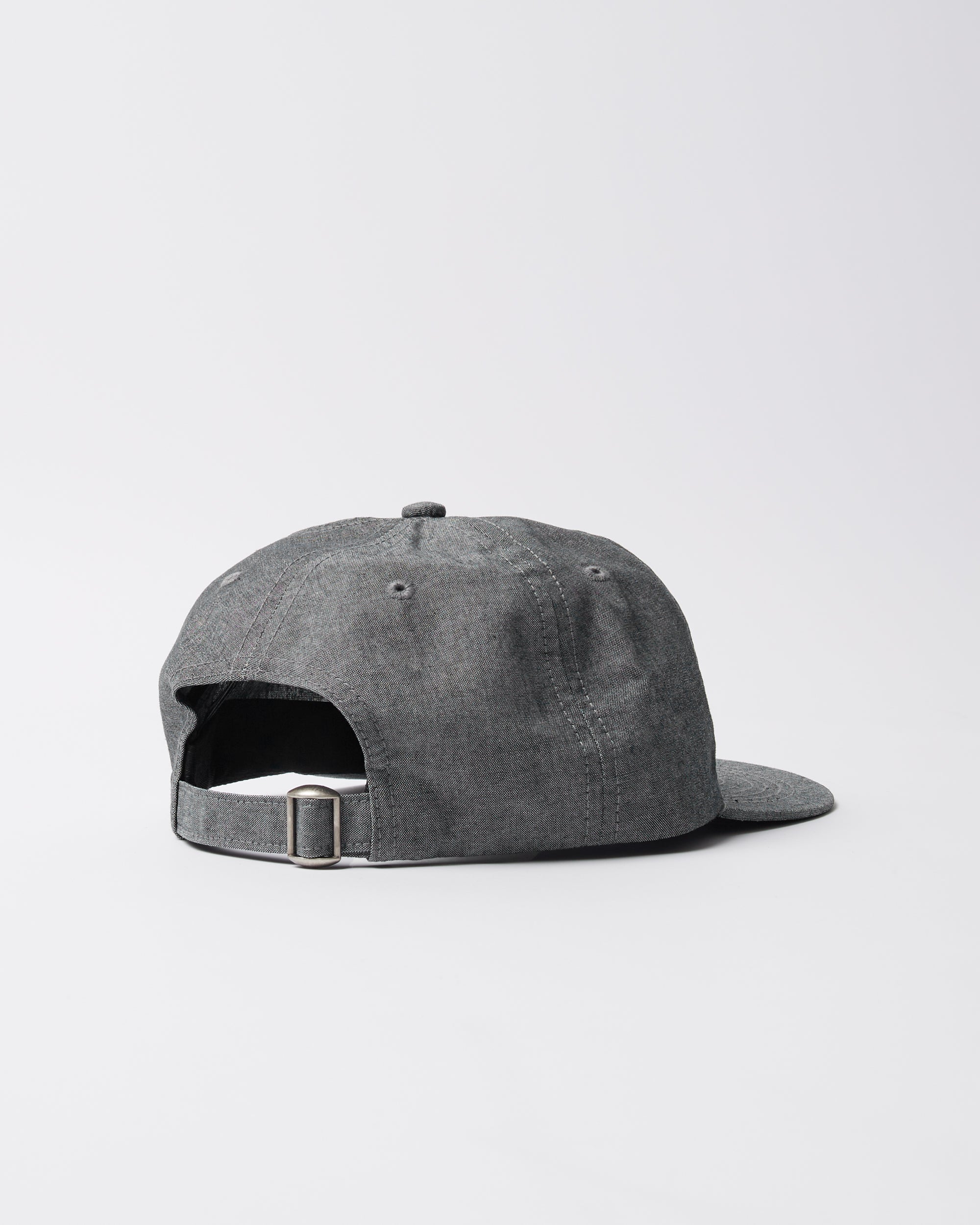 Unconstructed cotton chambray fabric hat with signature logo embroidery.